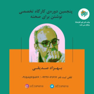 ۱.۳/۵ – (۱۳ امتیاز) توسط واحد فنآور افرامانا و با حضور بهزاد صدیقی پنجمین دورهی کارگاه نوشتن برای صحنه با حضور بهزاد صدیقی، نمایشنامهنویس و