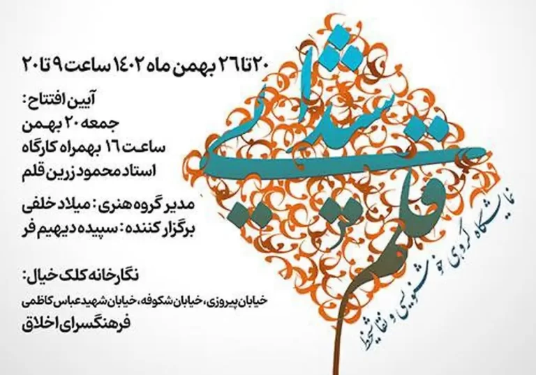 به گزارش هنردستان ، به نقل از روابط عمومی فرهنگسرای اخلاق، نمایشگاه گروهی خوشنویسی و نقاشی خط با عنوان «شیدایی قلم» به سرپرستی میلاد خلفی و سپیده دیهیم برگزار شده است.