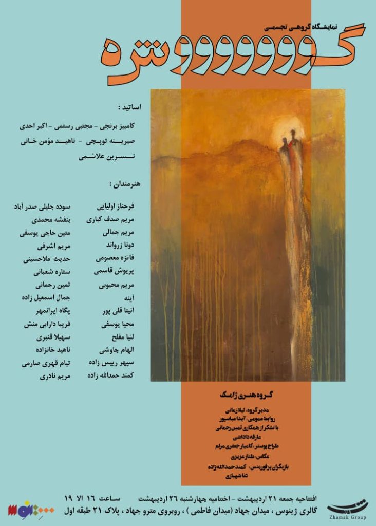 کامبیز برنجی، مجتبی رستمی، اکبر احدی، صبرینه توپچی، ناهید مومنخانی و نسرین علائمی نیز استادانی هستند که هنرمندان این نمایشگاه را یاری و همراهی کردهاند.