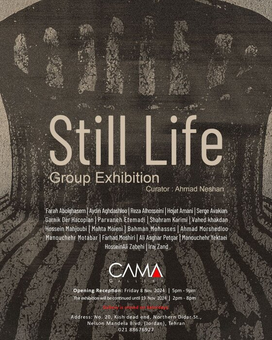 نمایشگاه نقاشی «طبیعت بیجان» با آثاری از هنرمندان برجسته معاصر روز جمعه در گالری کاما افتتاح خواهد شد.