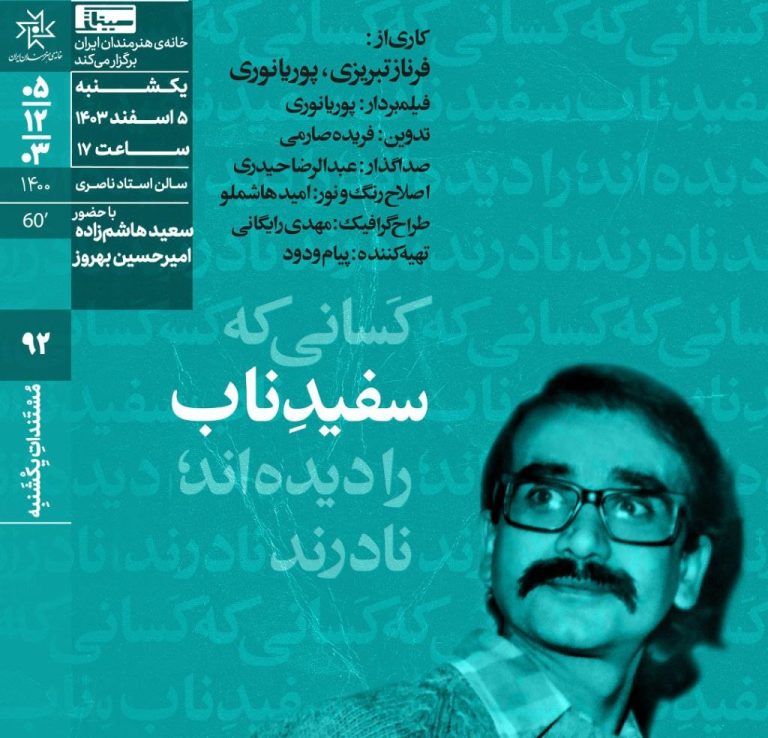 فیلم مستند ۶۰ دقیقهای «سفیدِ ناب» ساعت ۱۷ یکشنبه ۵ اسفندماه در سالن استاد ناصری خانه هنرمندان ایران روی پرده خواهد. رفت.