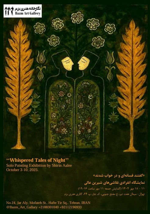 نمایشگاه نقاشیهای شیرین عالی با عنوان «گفتند فسانهای و در خواب شدند» ۱۱ مهرماه ۱۴۰۴ در گالری بزم گشایش مییابد.
