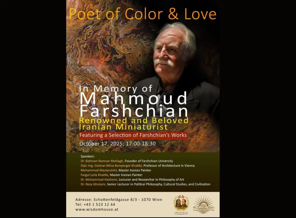 رایزنی فرهنگی جمهوری اسلامی ایران در اتریش با همکاری خانه حکمت ایرانیان در وین، برای محمود فرشچیان نگارگر ایرانی یادبود برگزار میکند.