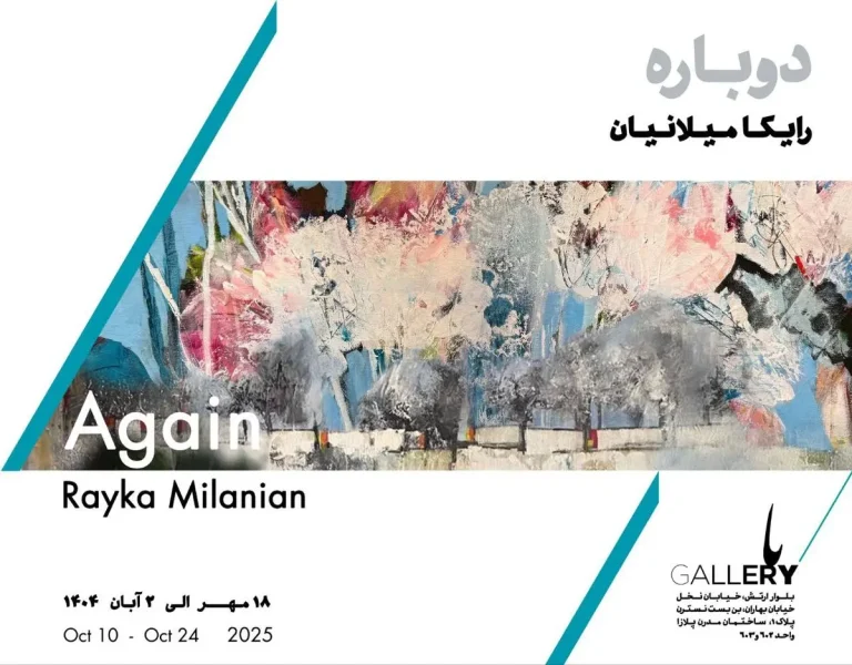 مجموعهای جدید از آثار رایکا میلانیان با عنوان نمایشگاه «دوباره» شامل آثار رایکا میلانیان روز جمعه، ۱۸ مهرماه افتتاح میشود.