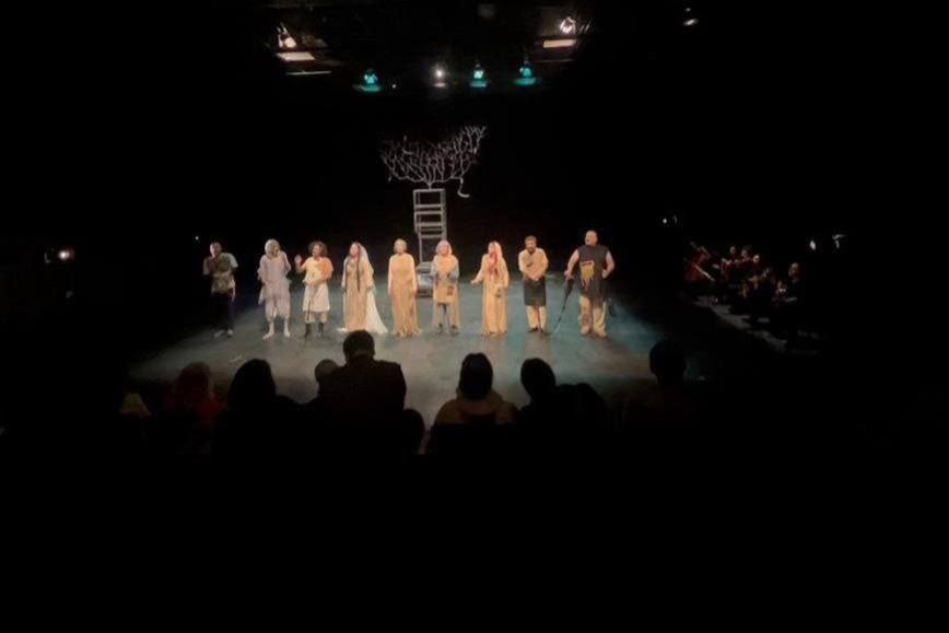 گروه نمایش «عروس انار» و تماشاگران یک دقیقه به احترام زندهیاد ناصر تقوایی خالق «ناخدا خورشید» سینمای ایران سکوت کردند.