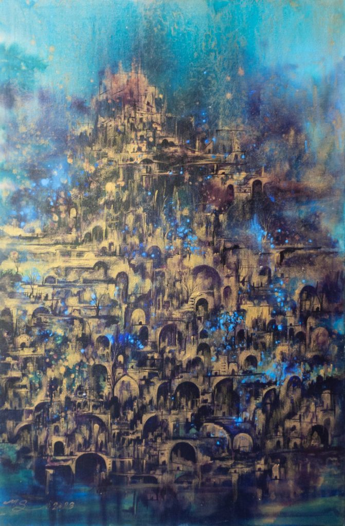 در استیمنت این نمایشگاه آمده است: در آثار محمدعلی سعیدی، «باغ ایرانی» نه صرفاً بهمثابه فضایی طبیعی، بلکه بهعنوان بیانی فلسفی از نظم و خیال بازآفرینی میشود. در این نقاشی، ترکیب هندسهی معماری ایرانی با نور وهمانگیز و رنگهای رویایی، مخاطب را به درون جهانی میان واقعیت و خیال میکشاند؛ جایی که زمانایستاده و طبیعت در سکوتی متافیزیکی تنفس میکند. غیبت انسان در این فضا، نشانهای از میل نقاش به جستوجوی «حضور غایب» است؛ حضوری که در سنگ و درخت و آب انعکاس یافته و روح معماری ایرانی را زنده نگاه میدارد. گنبدها و طاقها، حوضی آرام و گذر چهارباغ، نه بازنمایی گذشته، بلکه بازخوانی ناخودآگاه جمعی ایرانی در بستر سورئالیسماند. سعیدی با پرهیز از هرگونه روایت مستقیم، فضا را به رؤیایی معمارانه بدل کرده است؛ رؤیایی که در آن طبیعت و ساختار، حافظه و خیال، در تعادلی شاعرانه به گفتوگو مینشینند. در نتیجه، مخاطب در برابر این اثر نه با تصویری از باغ، بلکه با تجلیاندیشه ایرانی درباره جهان و معنا مواجه میشود.