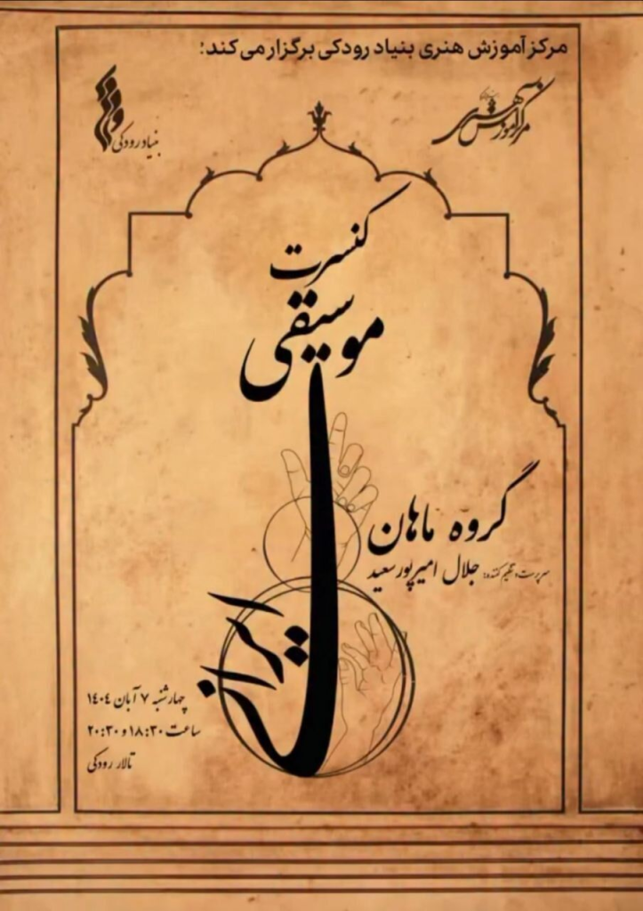 کنسرت گروه موسیقی ایرانی «ماهان» به سرپرستی جلال امیرپور سعید، در تالار رودکی برگزار میشود.