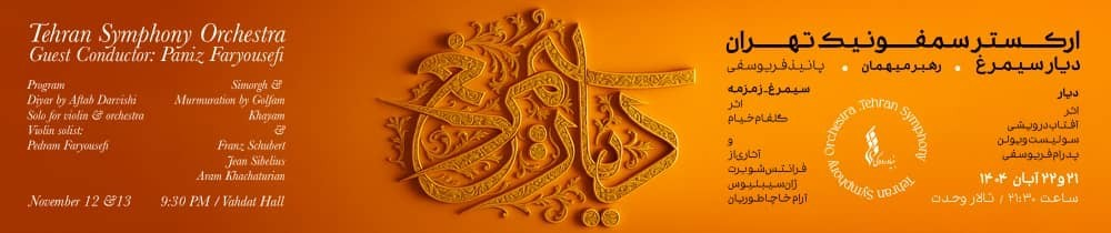 کنسرت ارکستر سمفونیک تهران با عنوان “دیارِ سیمرغ” با رهبری میهمان پانیذ فریوسفی ۲۱ و ۲۲ آبان، ساعت ۲۱:۳۰ در تالار وحدت برگزار میشود و علاقمندان میتوانند جهت تهیه بلیت این برنامه به سایت هنرتیکت مراجعه نمایند.