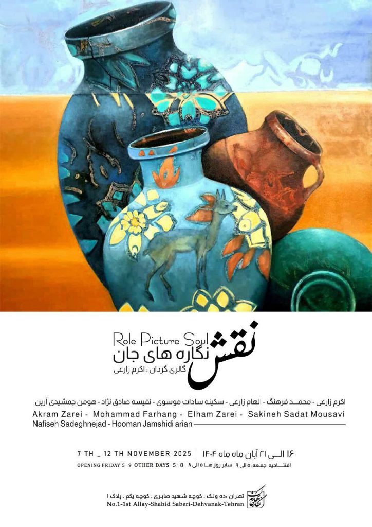 نمایشگاه گروهی نقاشی با گالری گردانی اکرم زارعی با عنوان «نقشنگارههای جان» با نگاهی به هنرهای معاصر با نمادهای ایرانی در نگارخانه بهارک برگزار میشود.