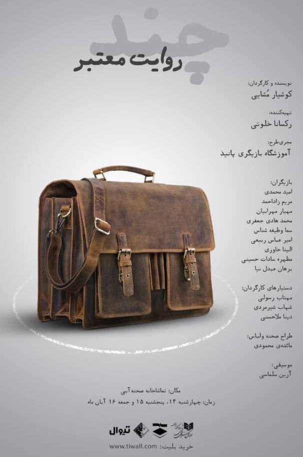 نمایش «چند روایت معتبر» به نویسندگی و کارگردانی کوشیار مشائی در تماشاخانه صحنه آبی روی صحنه میرود.