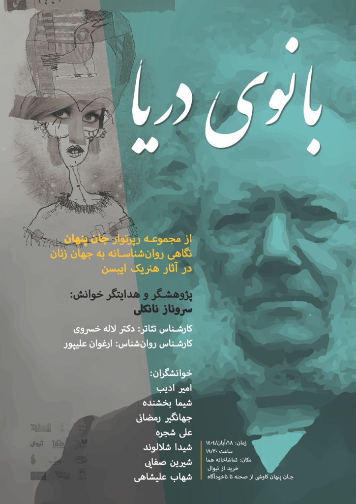 نمایشنامهخوانی «بانوی دریا» در قالب رپرتوار نمایشی «جان پنهان» یکشنبه ۱۸ آبان در تماشاخانه هما اجرا میشود.