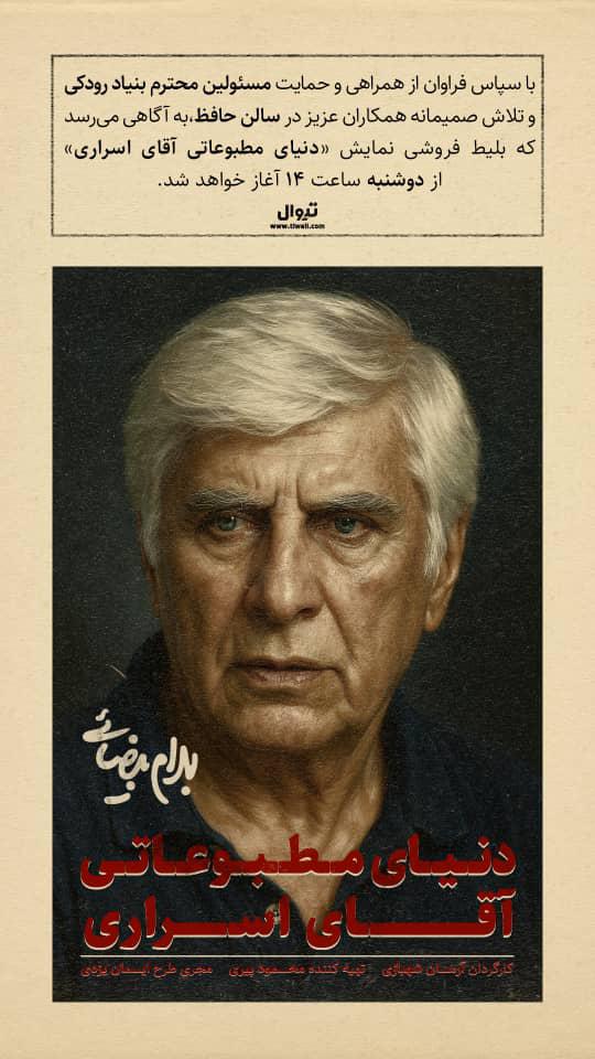 ایمان یزدی، مجری طرح و مدیر تولید نمایش «دنیای مطبوعاتی آقای اسراری به تهیه کنندگی محمود پیری و کارگردانی آرمان شهبازی پس از انتقادهای اولیه درباره بینظمی و لغو تمرینها در تالار حافظ، اعلام کرد که با ورود مدیران بنیاد رودکی و پیگیریهای انجامشده، تمام مشکلات برطرف شده و همکاریها بهشکلی فراتر از انتظار ادامه دارد. او با قدردانی از دکتر ستایشگر و تیم هماهنگی تالار حافظ، خبر داد که اجرای نمایش احتمالاً از پایان هفته آینده و همزمان با روزهای پایانی آذر یا اوایل دیماه آغاز میشود.