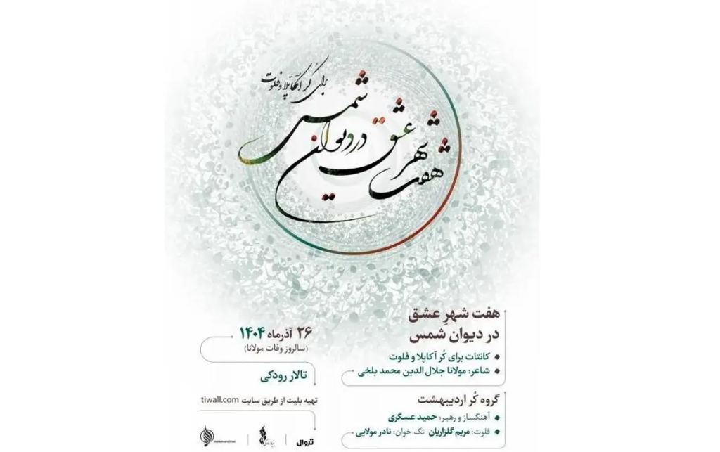 گروه کر اردیبهشت با عنوان «هفت شهر عشق در دیوان شمس»، در تالار رودکی کنسرت میدهد.