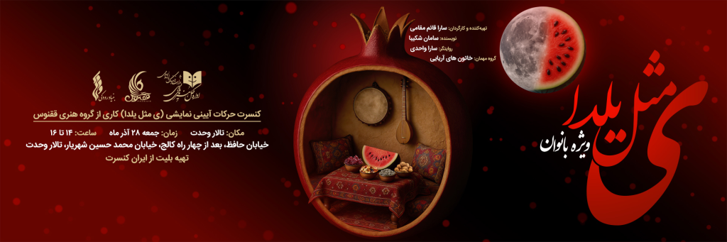 گروه هنری ققنوس به کارگردانی و طراحی سارا قائم مقامی، نمایش «ی مثل یلدا» را جمعه ۲۸ آذر ماه، ویژه بانوان در تالار وحدت روی صحنه میبرد.