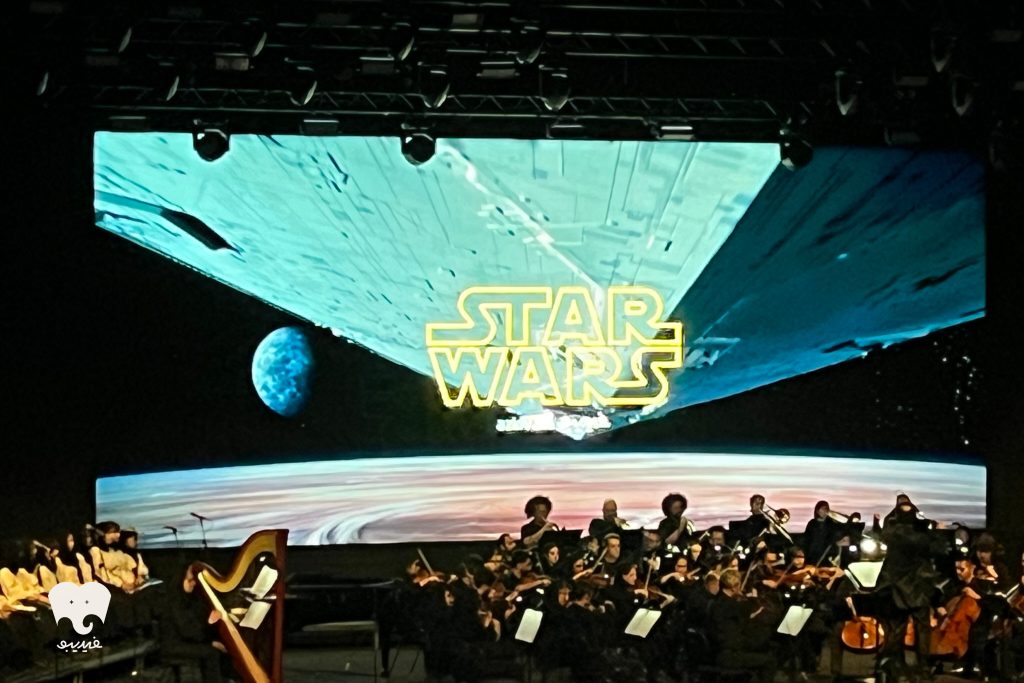 در ادامه، موسیقی فیلم «جنگ ستارگان» اثر جان ویلیامز با تمهای شناختهشده و ساختار سمفونیک خود اجرا شد و فضای حماسی اجرا را به اوج رساند. پس از آن، قطعاتی از موسیقی فیلم «لالالند» ساخته جاستین هرویتز با تأکید بر ریتمهای جَز و حالوهوای معاصر به اجرا درآمد.