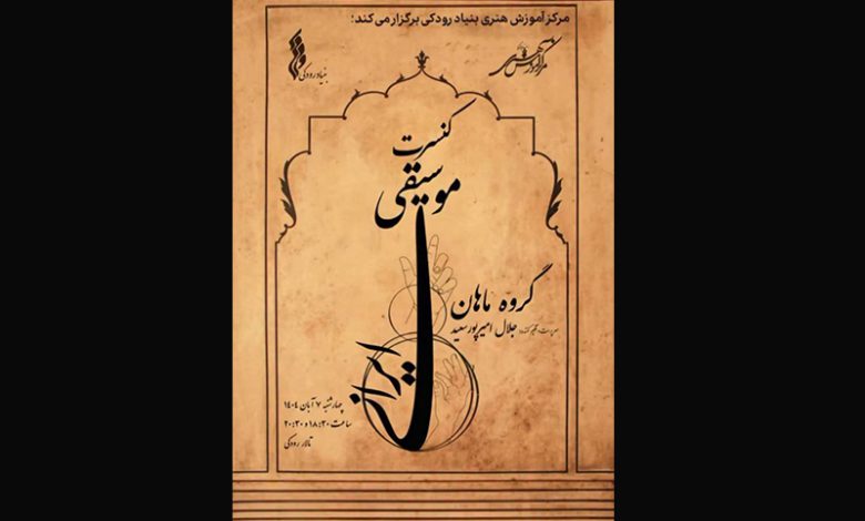 کنسرت گروه موسیقی ایرانی «ماهان» به سرپرستی جلال امیرپور سعید، در تالار رودکی برگزار میشود. به گزارش هنردستان به نقل از روابط عمومی بنیاد رودکی ، کنسرت گروه موسیقی ایرانی «ماهان» به سرپرستی جلال امیرپور سعید، توسط مرکز آموزش هنری بنیاد رودکی، ۷ آبان ماه در تالار رودکی برگزار میشود. در این کنسرت که در […]